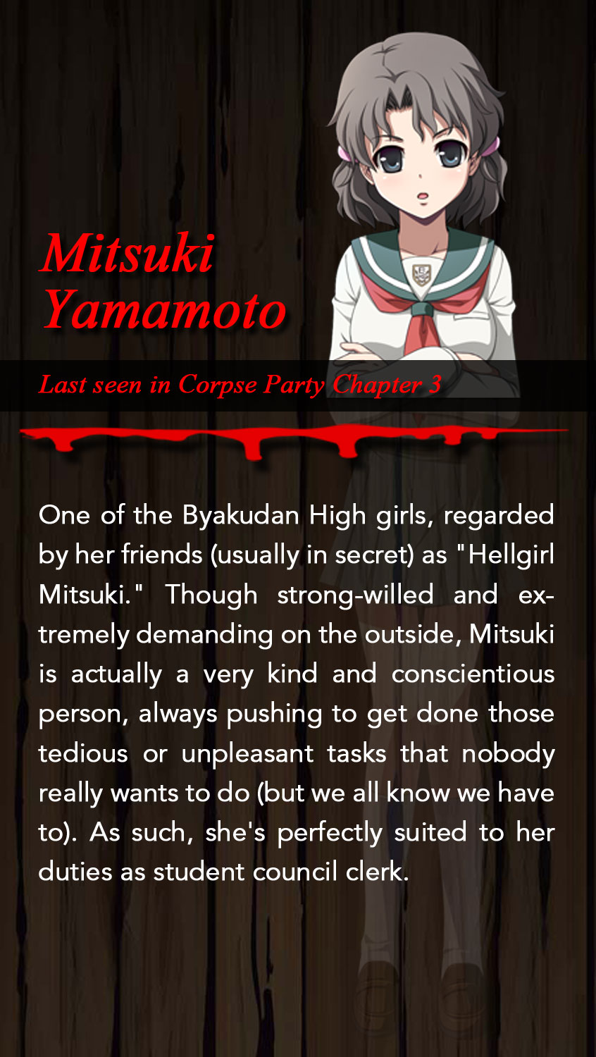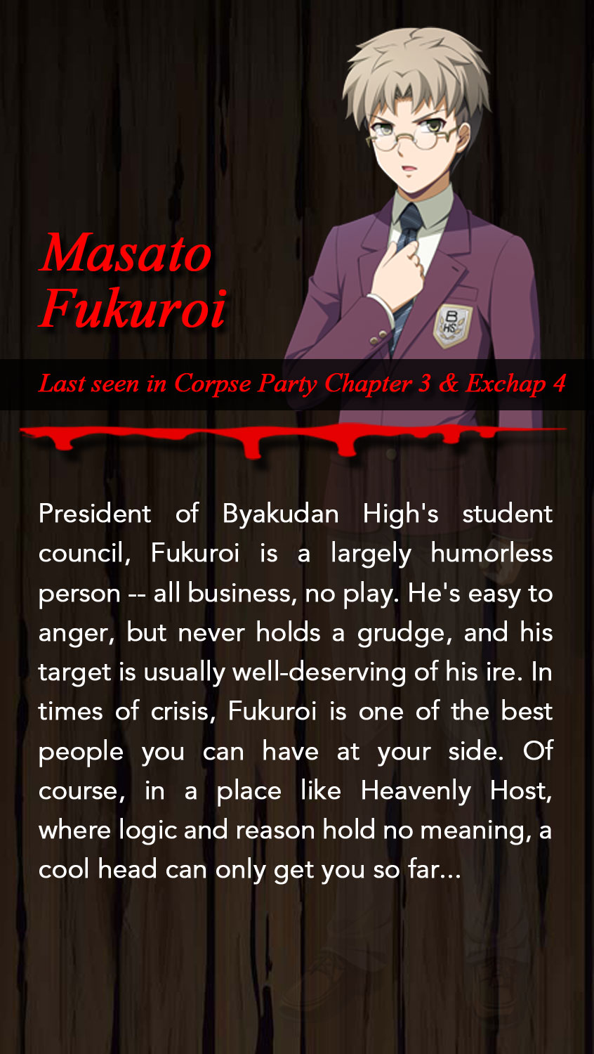 Other chapters detail events leading up to Corpse Party, providing insight into the minds of some of its less prominent characters and revealing the influence they may have had in the grand scheme of things (or the influence it may have had on them).
