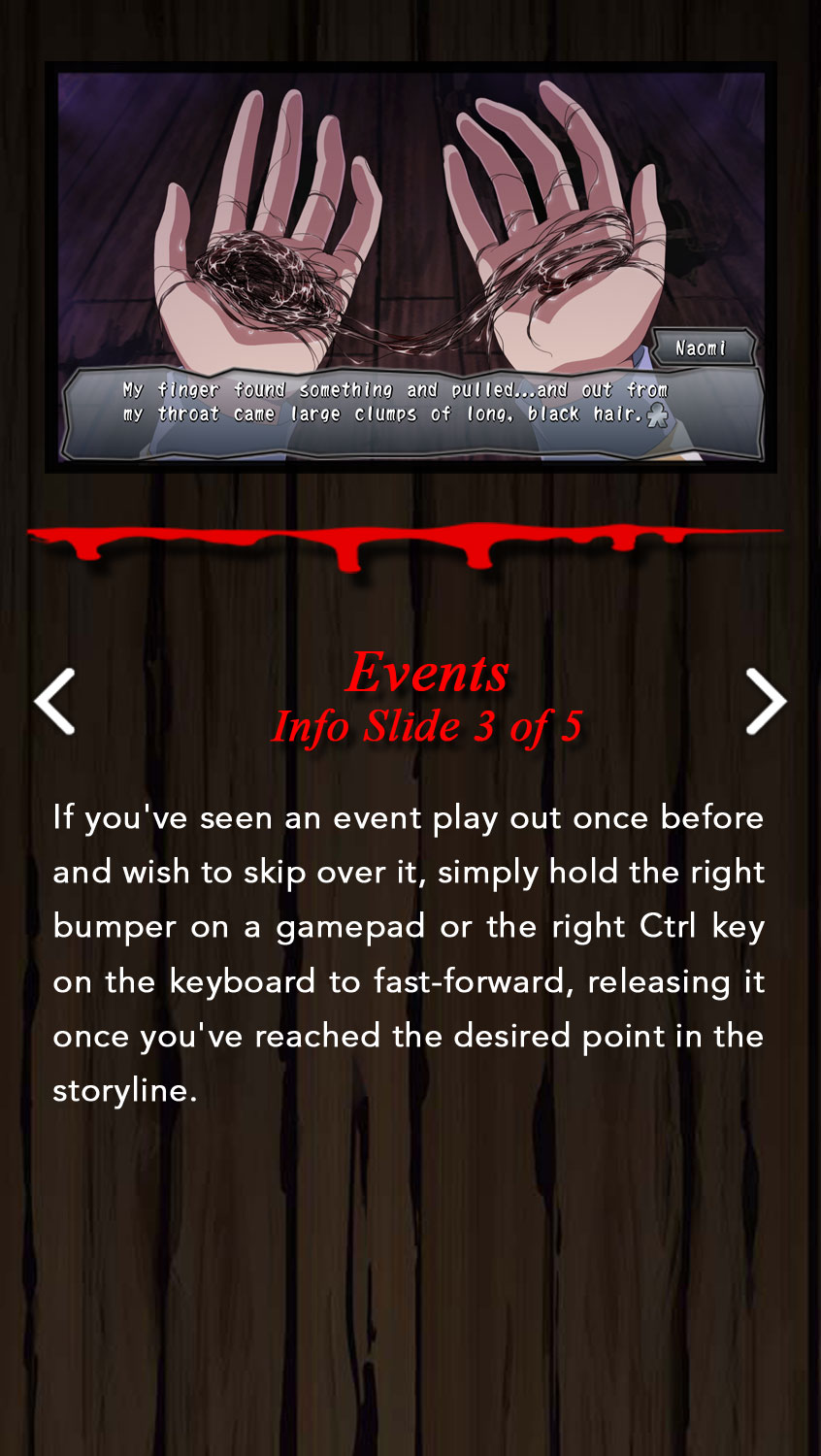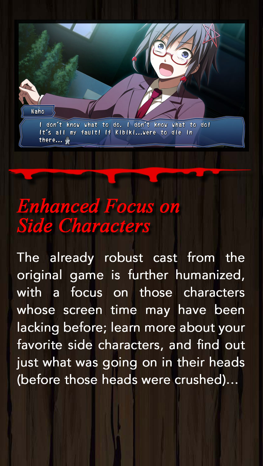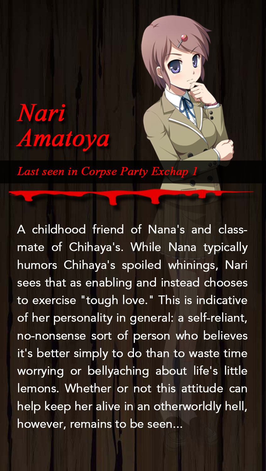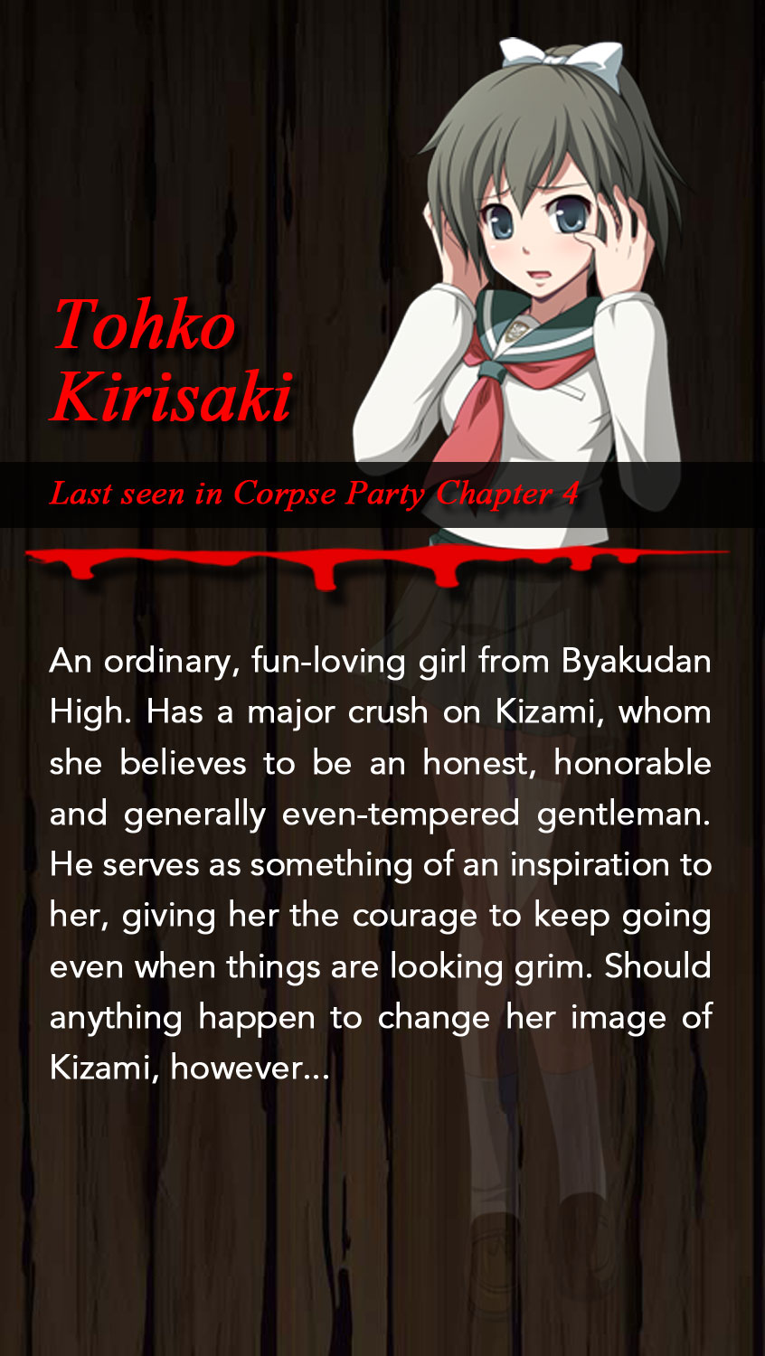 Some chapters take place in an alternate timeline, where characters go into the events of Corpse Party with foreknowledge of the fates that are destined to befall them, granting them a rare opportunity to make different decisions and potentially avert their grisly demises.