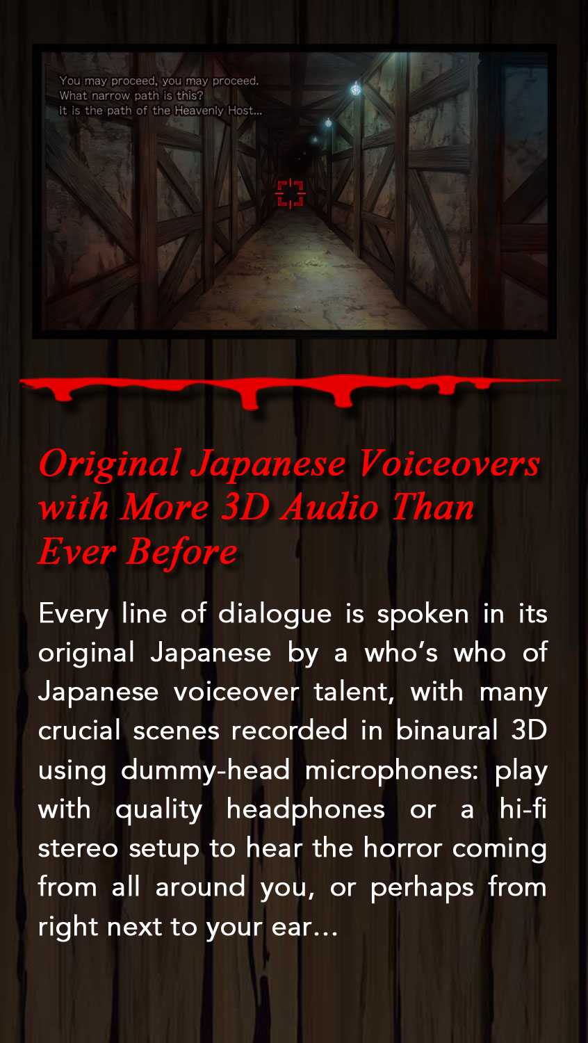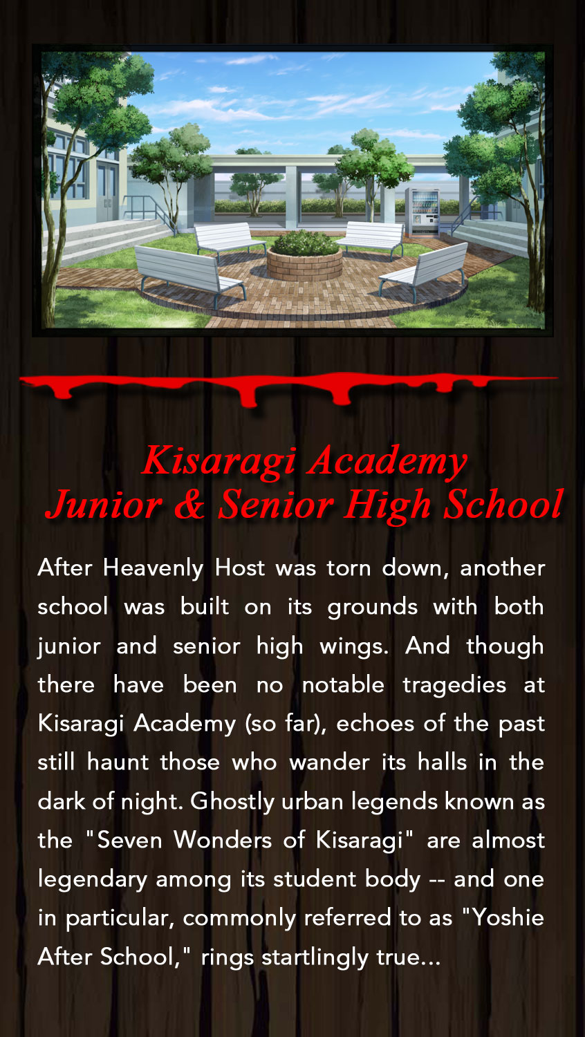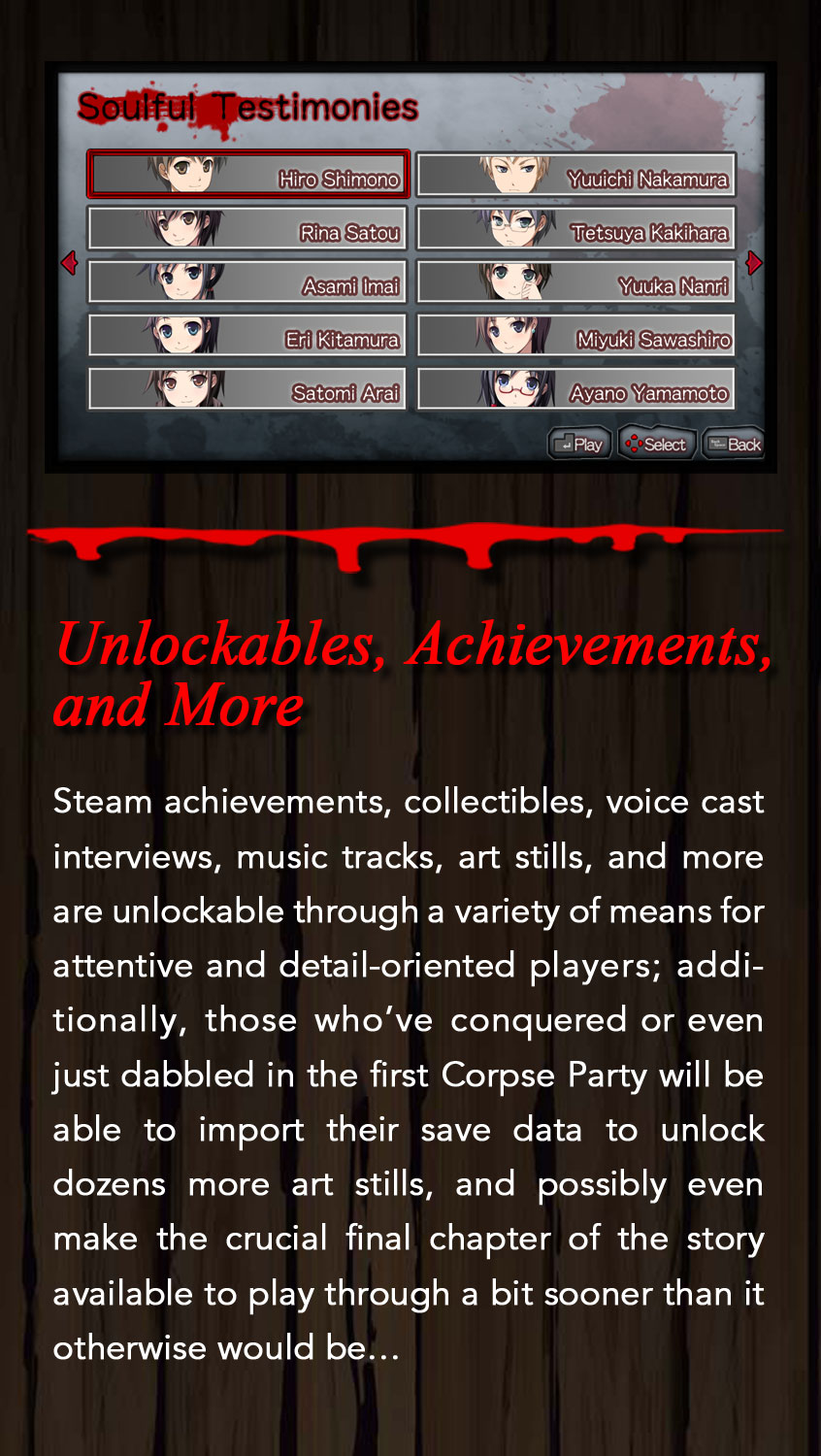 And the final chapter, available only to those who have either played through the first Corpse Party or seen every wrong end in Corpse Party: Book of Shadows, details events from approximately two weeks after the first game's conclusion, delving deeper into the mystery as two characters frantically search for answers in a location even more cursed and uninviting than Heavenly Host Elementary itself...