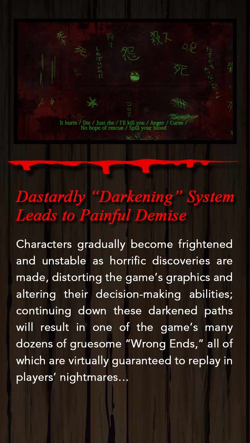 one little sister and one teacher who all got trapped in a cursed elementary school that shouldn't even exist, and were assaulted mercilessly therein by malevolent spirits. It was a game riddled with twists, turns and "wrong ends" that culminated in haunting, brutal death scenes, and its conclusion left many questions unanswered and more than a few loose threads untied (while at least one other was tied perhaps a bit too tightly)...