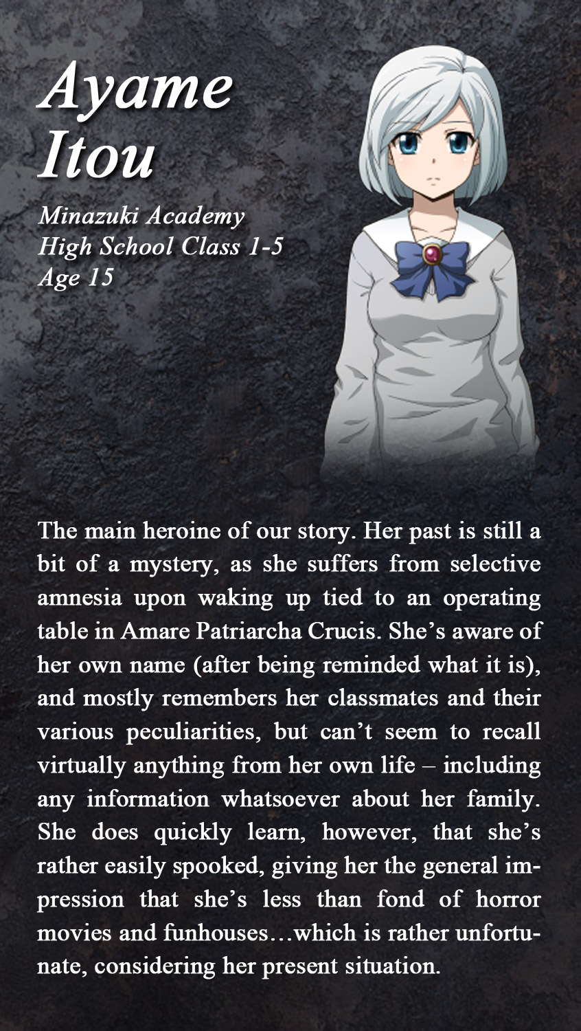 Ayame Itou is just your average highschooler. Or at least...she thinks she is. In truth, she can't remember much about herself at all. She didn't even remember her name until she saw it on her patient record.
